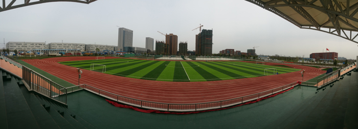 看臺上跑道、足球場全景